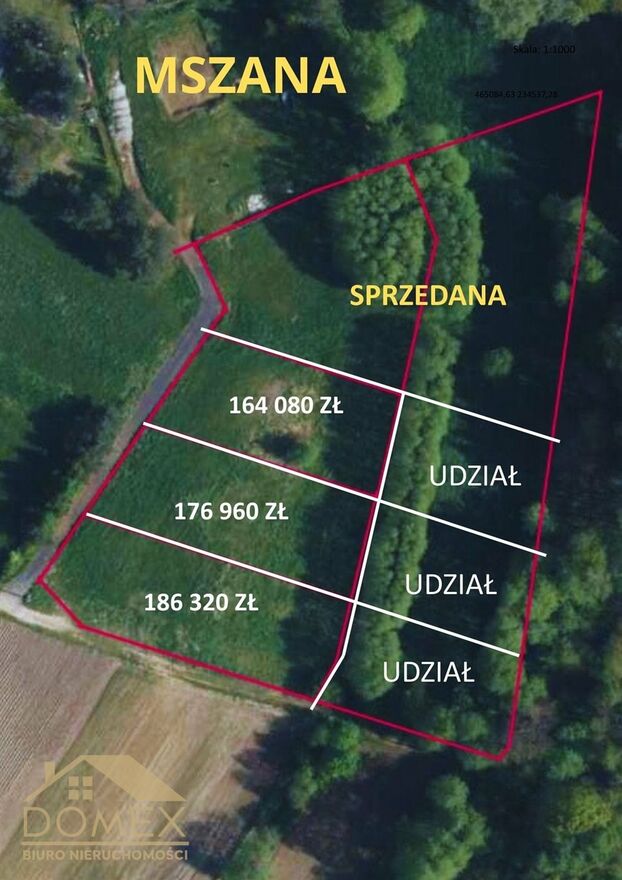 991 m² + udział ok. 732 m² = 1723 m² | 164 080 zł